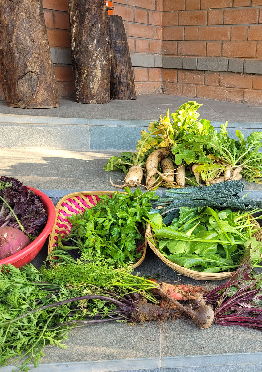 Having Tanya guide us in our effort to grow vegetables in an organic ... fashion was very fruitful indeed. Right from preparing the beds, making the organic pesticides and using things like Jivan Amrut, to educating our staff and us, she accommodated all our choices of vegetables and herbs and helped source the seeds and saplings for most of the produce. She had a team who created structural shades for delicate crops prone to attack by rodents and monkeys. This made it very easy to start operations quickly and effi ciently. She also helped source manure and other organic fertilisers at competent rates. All in all not only did the contract with her prove benefi cial but we thoroughly enjoyed working with her.